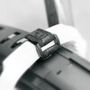 Vorne wird das VELOFLEXX an der Gabelbrücke mit einem gummierten Klettstrap oder Kabelbinder befestigt